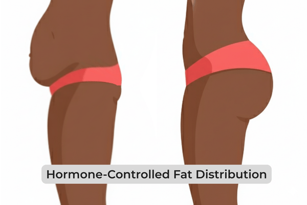 Curves are controlled by female hormones and nutrient signals that tell your body where to grow.